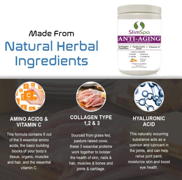 COMBATIR LOS SIGNOS DEL ENVEJECIMIENTO: La fórmula en polvo de suplemento de belleza antienvejecimiento para el cabello y la piel es el único suplemento de colágeno natural que contiene ácido hialurónico y vitamina C, un poderoso antioxidante natural que ayuda a proteger contra el envejecimiento prematuro.