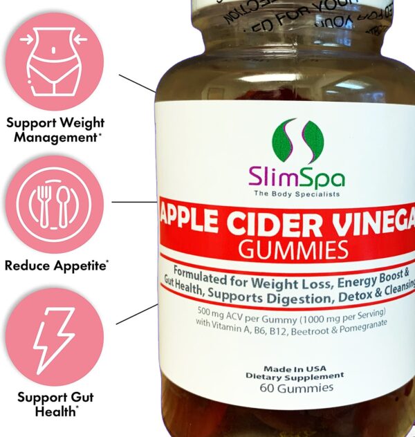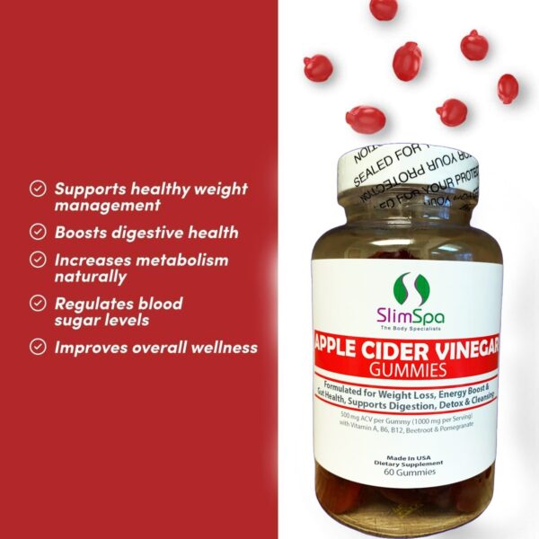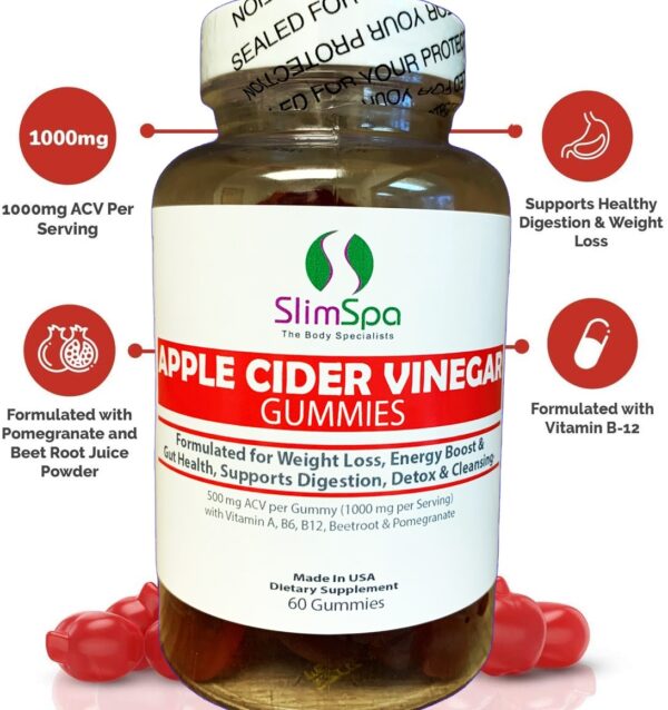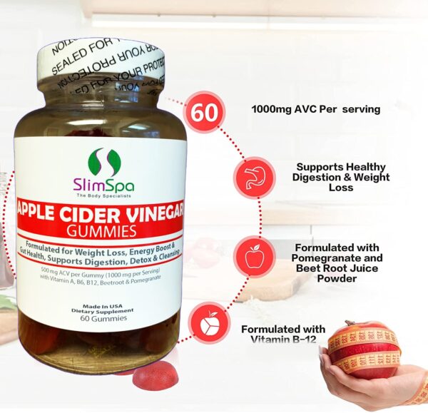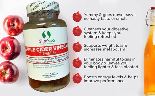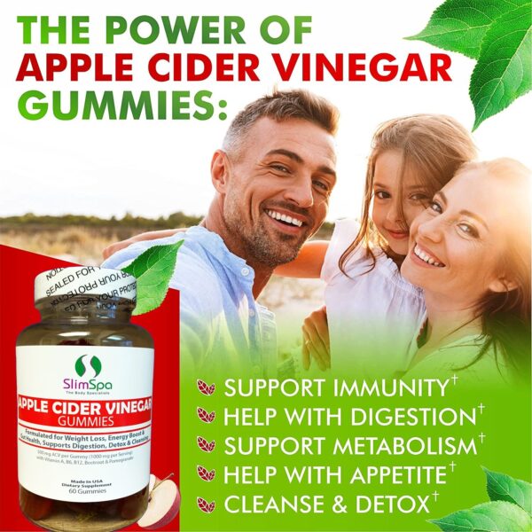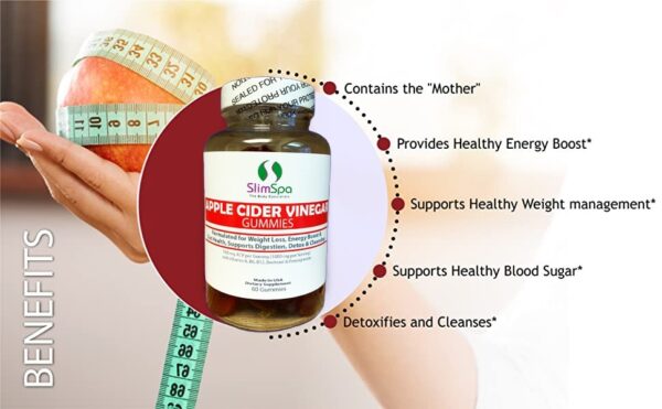 Soporte de bienestar: las gomitas de vinagre de sidra de manzana apoyan su salud. Te ayuda a experimentar más energía. El suplemento de vinagre de sidra de manzana ayuda con la digestión y la flora intestinal. Puede ayudar con los niveles de azúcar en la sangre.