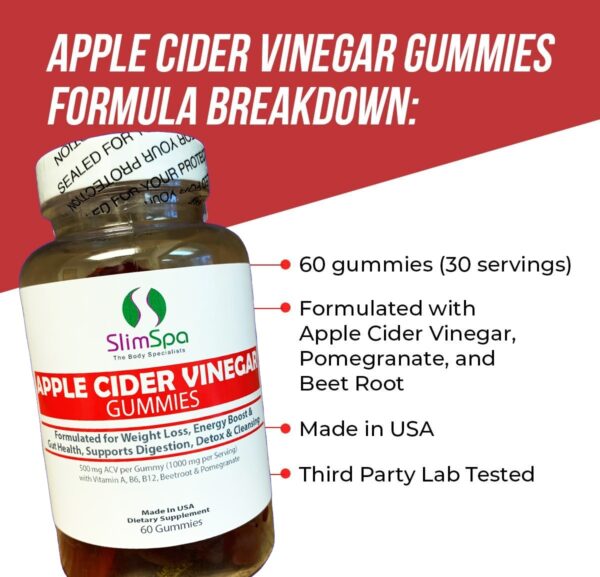 TAN SABROSO Y TAN EFECTIVO : disfrute de todos los beneficios del vinagre de sidra de manzana sin la desventaja beberlo; Nuestras Gomitas de Vinagre de Sidra de Manzana son fáciles de tomar y una excelente manera de incorporar el vinagre de sidra de manzana en su régimen diario.