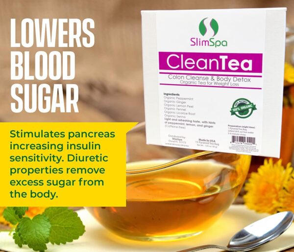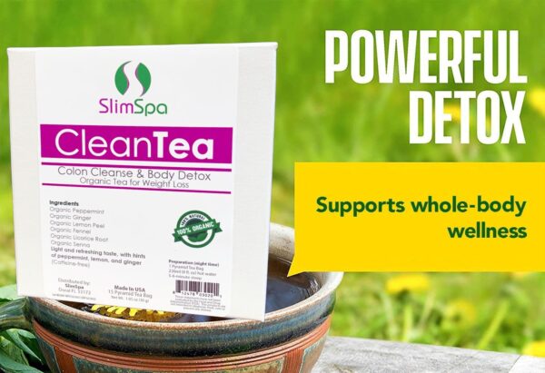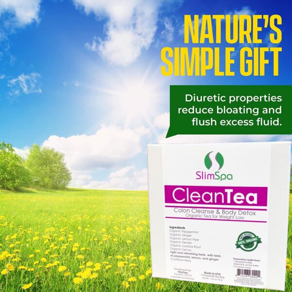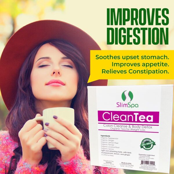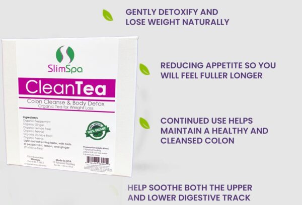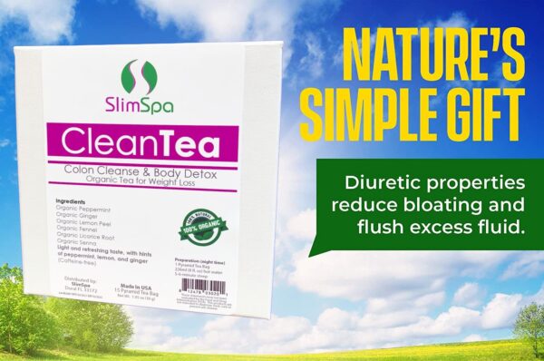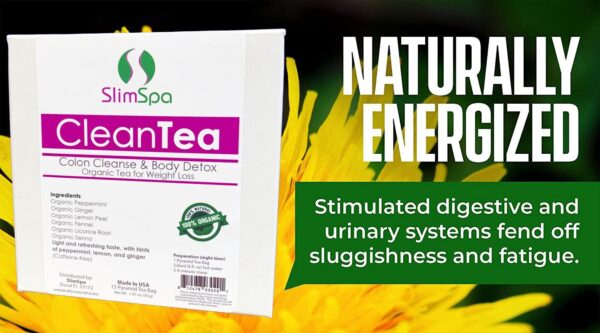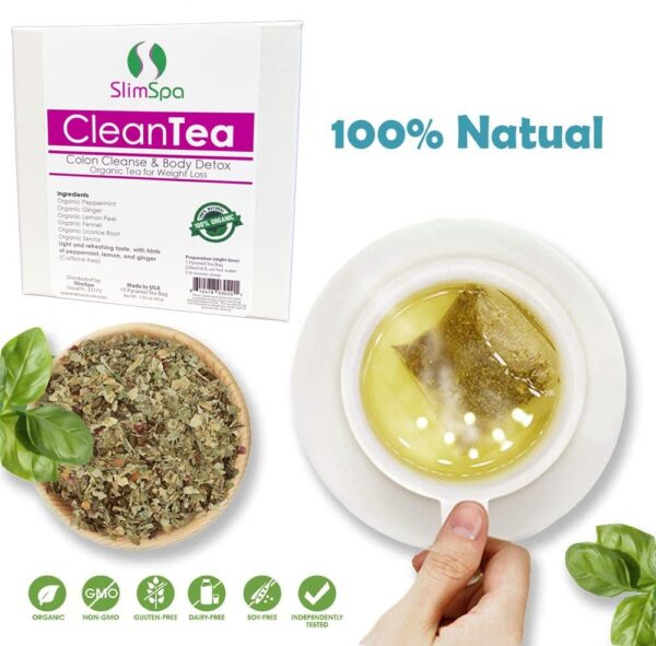 MEJORA LA DIGESTIÓN: CleanTEA puede ayudar a reducir la hinchazón y mejorar la digestión. Tiene un suave efecto de limpieza de colon. ¡CleanTEA tiene sabor a miel de limón y sabe delicioso! Usados junto con nuestro SlimTEA, CleanTea y SlimTea son la mejor combinación natural de limpieza y desintoxicación.