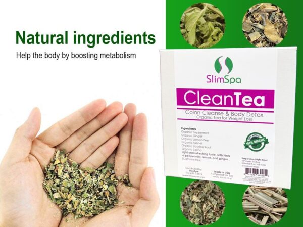 -CleanTea ayuda al cuerpo cargando el metabolismo , promoviendo una digestión adecuada y ayudando en la optimización del tracto digestivo. Los ingredientes de CleanTea están diseñados para estimular la capacidad del cuerpo para procesar el exceso de grasas, estimular la circulación sanguínea y proporcionar antioxidantes, vitaminas y minerales