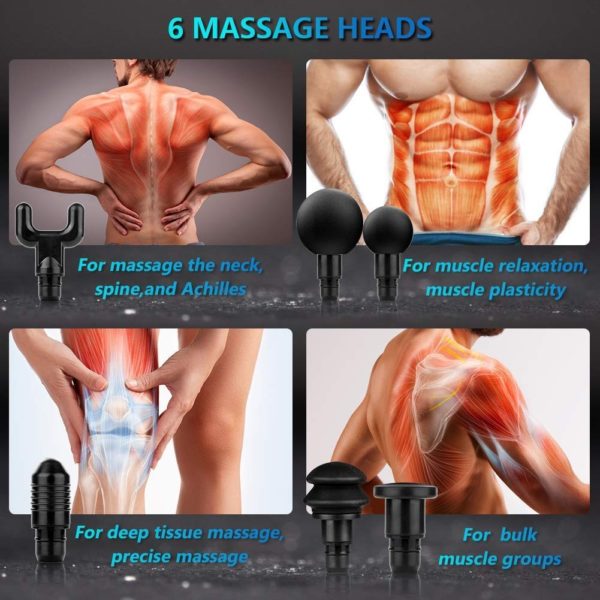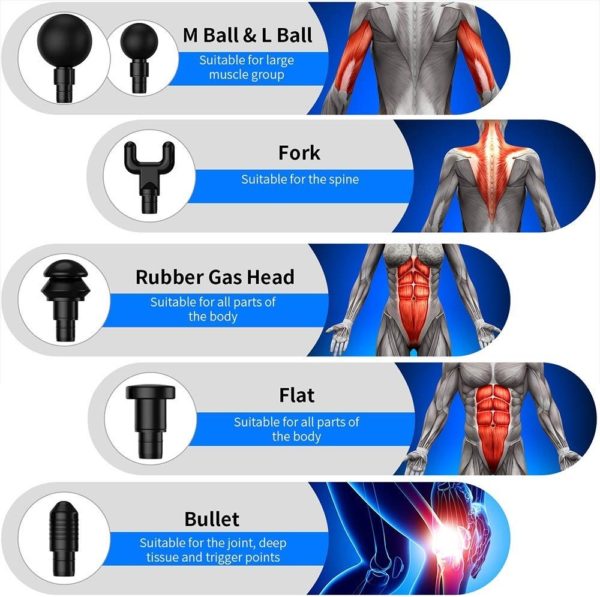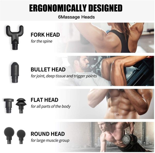 ALIVIE EL DOLOR MUSCULAR: ayuda a aliviar el dolor muscular y la rigidez con 6 accesorios intercambiables para la cabeza. Promueve la circulación y mejora el rango de movimiento y ayuda a acelerar el calentamiento y la recuperación